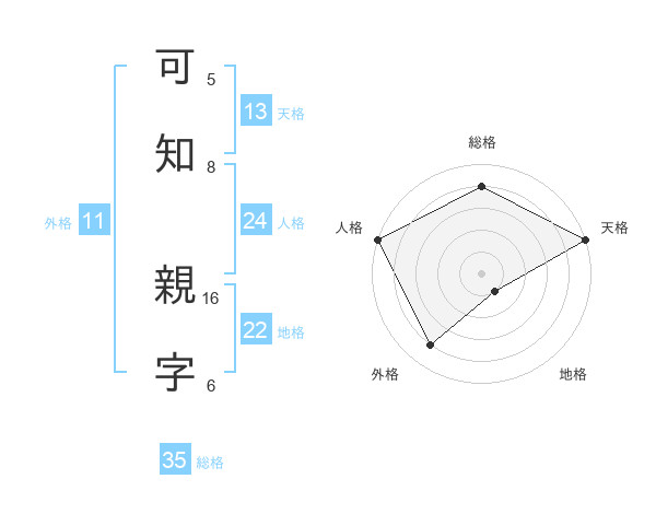 可知 親字さんの天格は13画の5点!