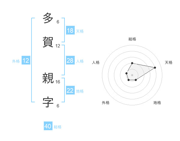 多賀 親字さんの天格は18画の4点!