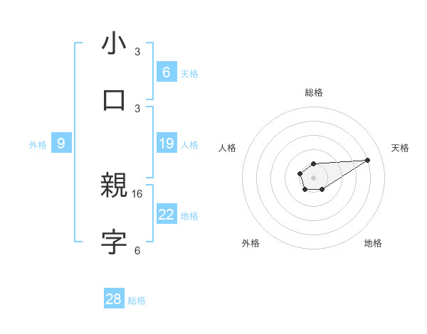 小口 親字さんの総格は28画の1点!
