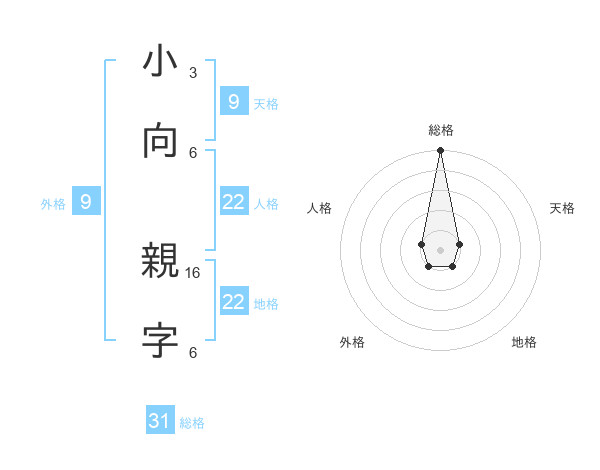 小向 親字さんの総格は31画の5点!