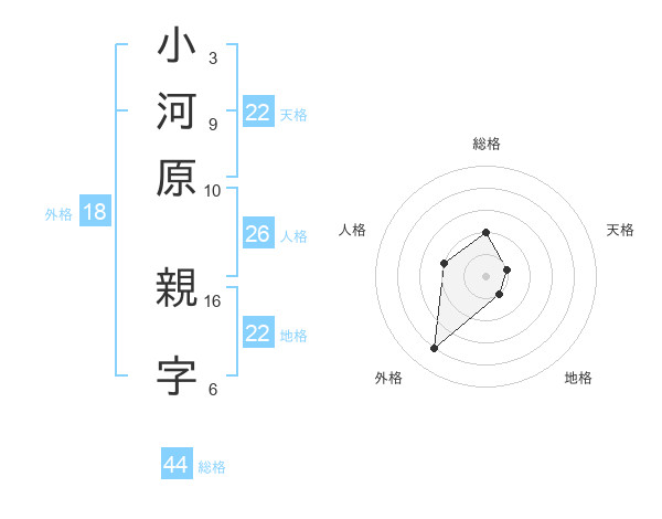 小河原 親字さんの総格は44画の2点!