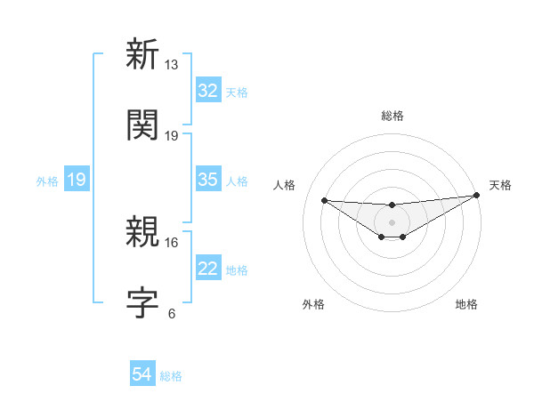 新関 親字さんの天格は32画の5点!