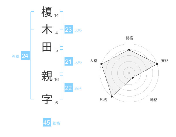 榎木田 親字さんの総格は45画の4点!