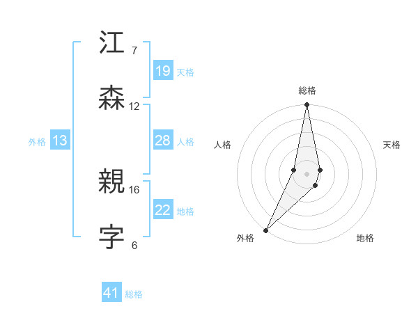江森 親字さんの総格は41画の5点!