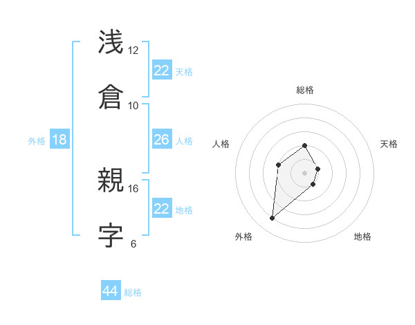 浅倉 親字さんの総格は44画の2点!