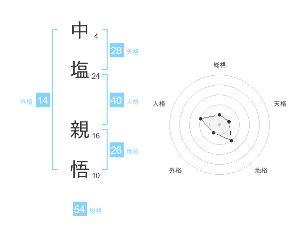 中塩 親悟さんを姓名の画数から五運を鑑定