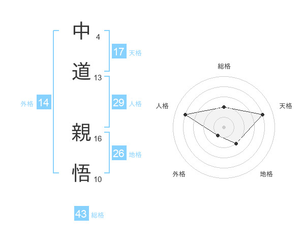 中道 親悟さんの天格は17画の4点!