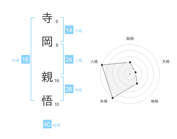 寺岡 親悟さんの天格は14画の1点!