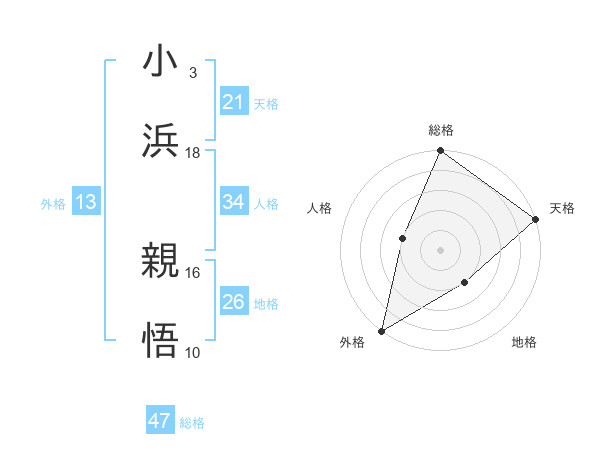 小浜 親悟さんを姓名の画数から五運を鑑定