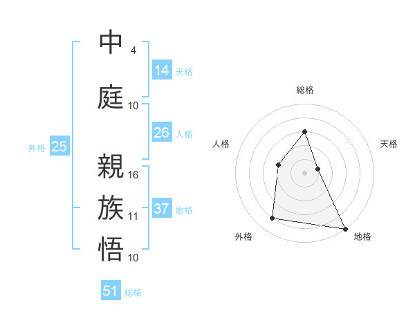 中庭 親族悟さんの総格は51画の3点!
