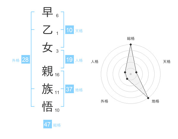早乙女 親族悟さんを姓名の画数から五運を鑑定