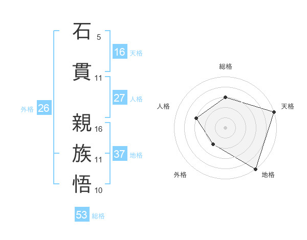 石貫 親族悟さんを姓名の画数から五運を鑑定