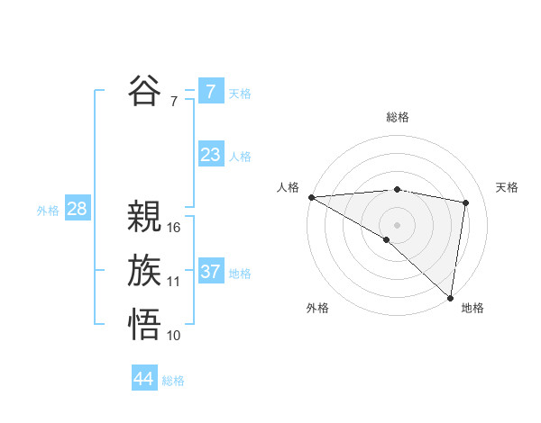 谷 親族悟さんの総格は44画の2点!