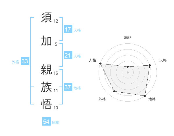 須加 親族悟さんを姓名の画数から五運を鑑定