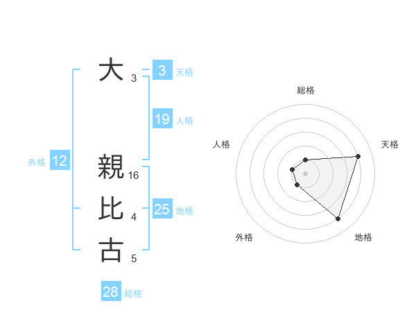 大 親比古さんの天格は3画の4点!
