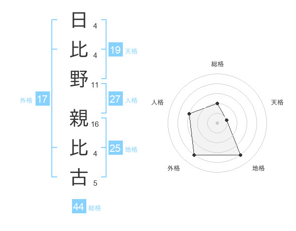 日比野 親比古さんを姓名の画数から五運を鑑定