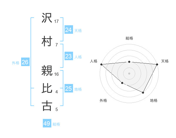 沢村 親比古さんを姓名の画数から五運を鑑定