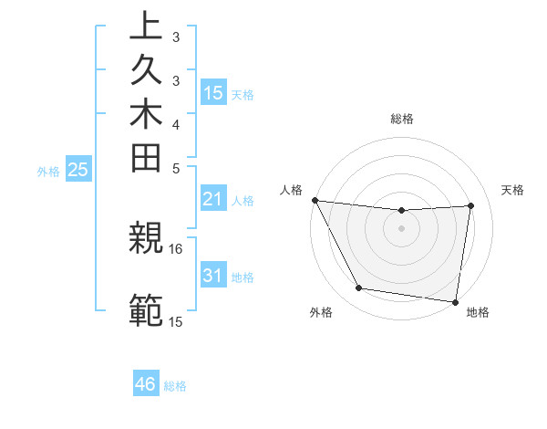 上久木田 親範さんを姓名の画数から五運を鑑定