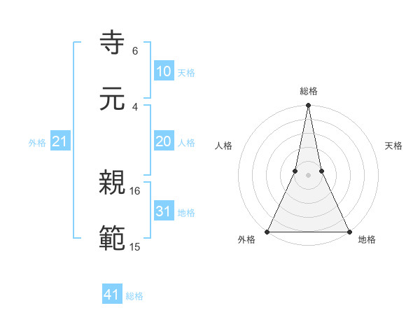 寺元 親範さんの外格は21画の5点!