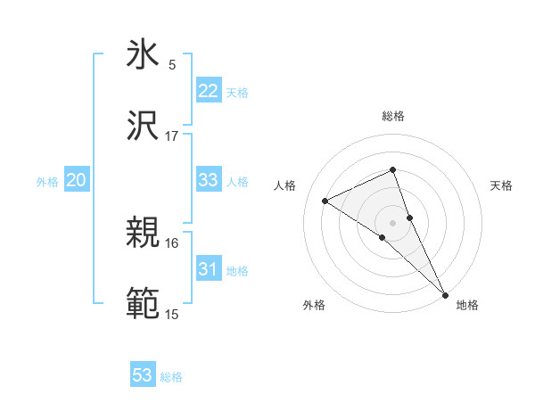 氷沢 親範さんの総格は53画の3点!