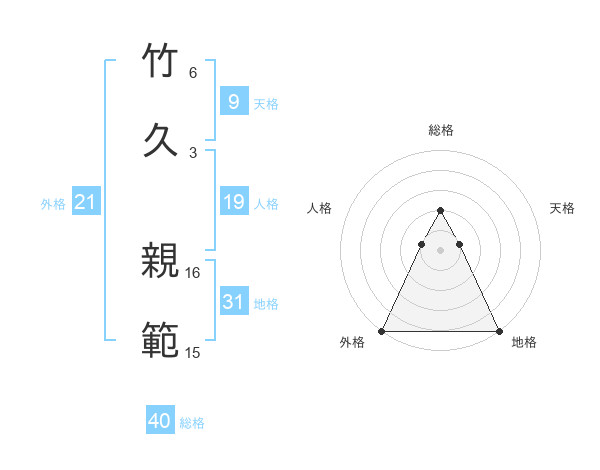 竹久 親範さんの総格は40画の2点!