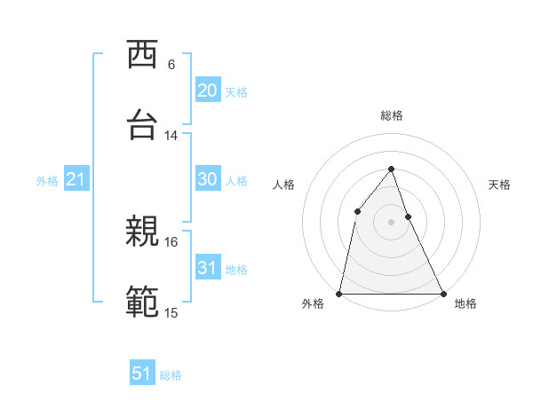 西台 親範さんの総格は51画の3点!