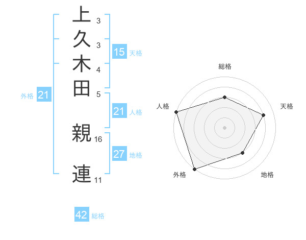 上久木田 親連さんを姓名の画数から五運を鑑定