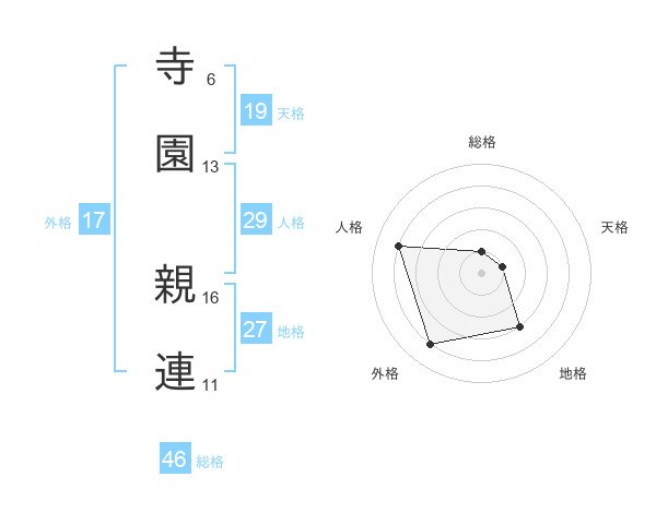 寺園 親連さんの外格は17画の4点!