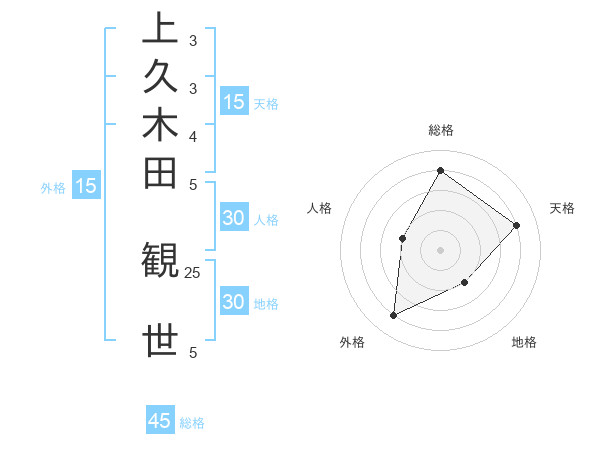 上久木田 観世さんを姓名の画数から五運を鑑定