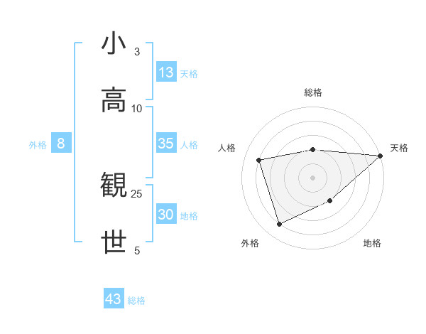 小高 観世さんの天格は13画の5点!