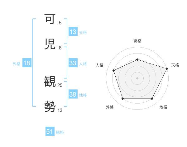 可児 観勢さんの総格は51画の3点!