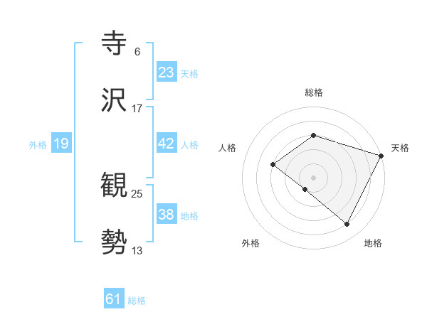 寺沢 観勢さんを姓名の画数から五運を鑑定