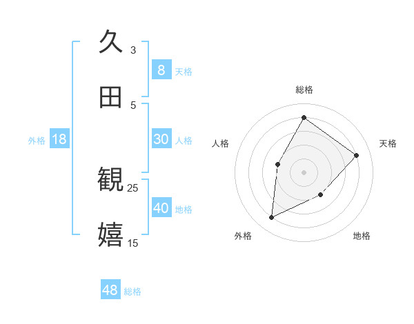 久田 観嬉さんを姓名の画数から五運を鑑定