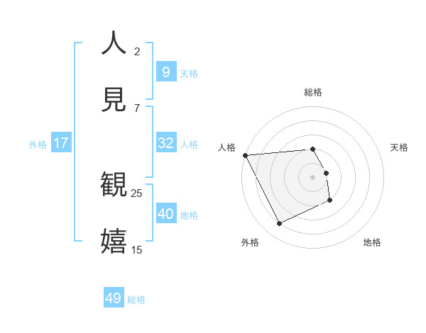 人見 観嬉さんの総格は49画の2点!