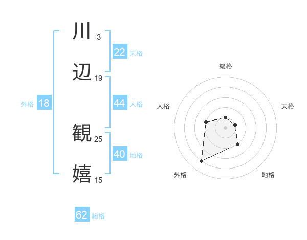 川辺 観嬉さんを姓名の画数から五運を鑑定