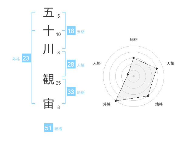 五十川 観宙さんを姓名の画数から五運を鑑定