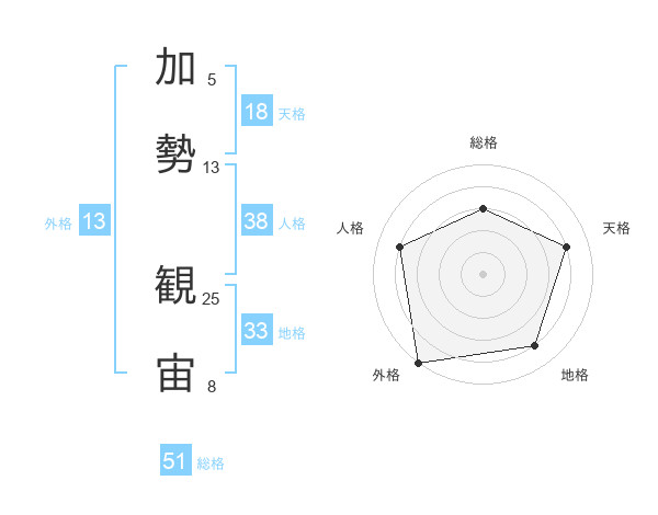 加勢 観宙さんを姓名の画数から五運を鑑定