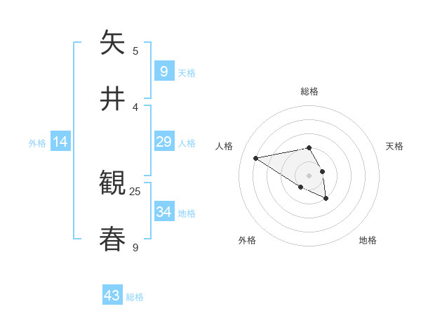 矢井 観春さんの総格は43画の2点!