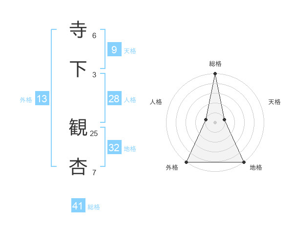 寺下 観杏さんを姓名の画数から五運を鑑定