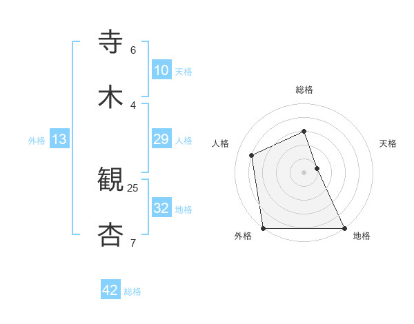寺木 観杏さんを姓名の画数から五運を鑑定
