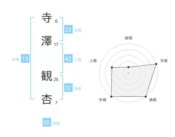 寺澤 観杏さんの天格は23画の5点!