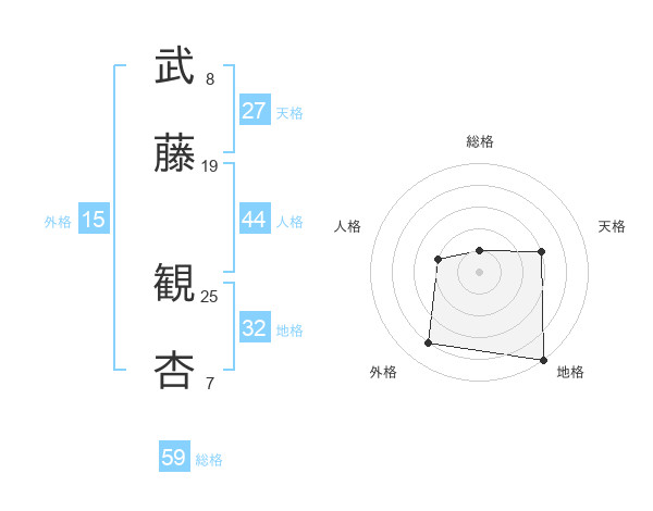 武藤 観杏さんの総格は59画の1点!