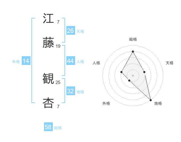 江藤 観杏さんを姓名の画数から五運を鑑定