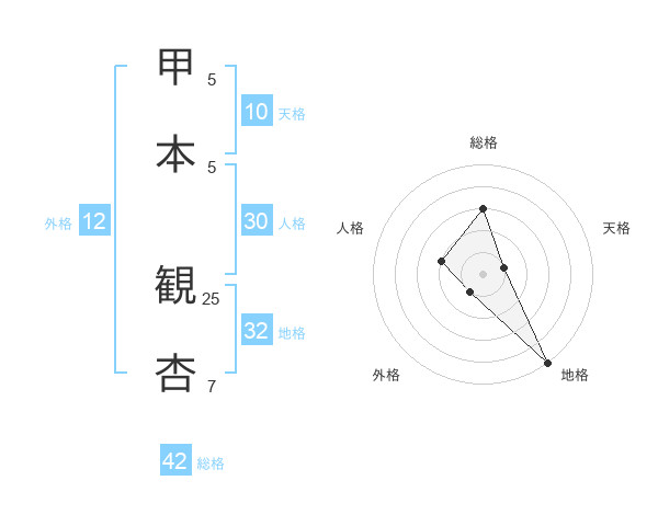 甲本 観杏さんの総格は42画の3点!