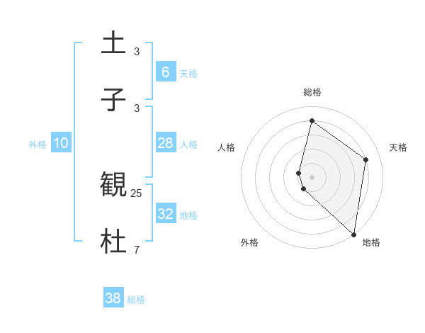 土子 観杜さんの総格は38画の4点!