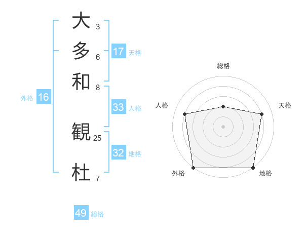 大多和 観杜さんを姓名の画数から五運を鑑定