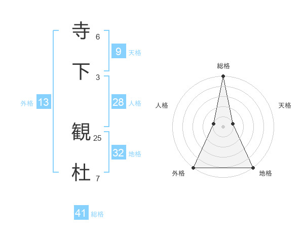 寺下 観杜さんを姓名の画数から五運を鑑定