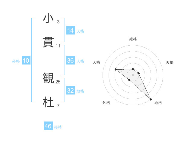小貫 観杜さんの総格は46画の1点!