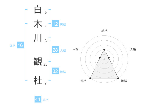 白木川 観杜さんを姓名の画数から五運を鑑定