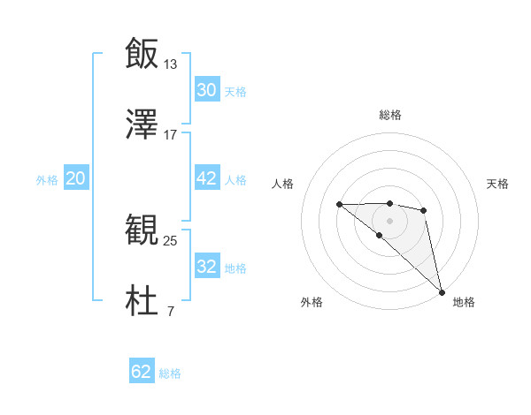 飯澤 観杜さんを姓名の画数から五運を鑑定